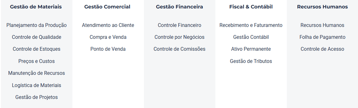 O SAM é um sistema modular e flexível, permitindo que as empresas escolham os módulos que melhor atendem às suas necessidades. Entre os principais módulos, destacam-se: